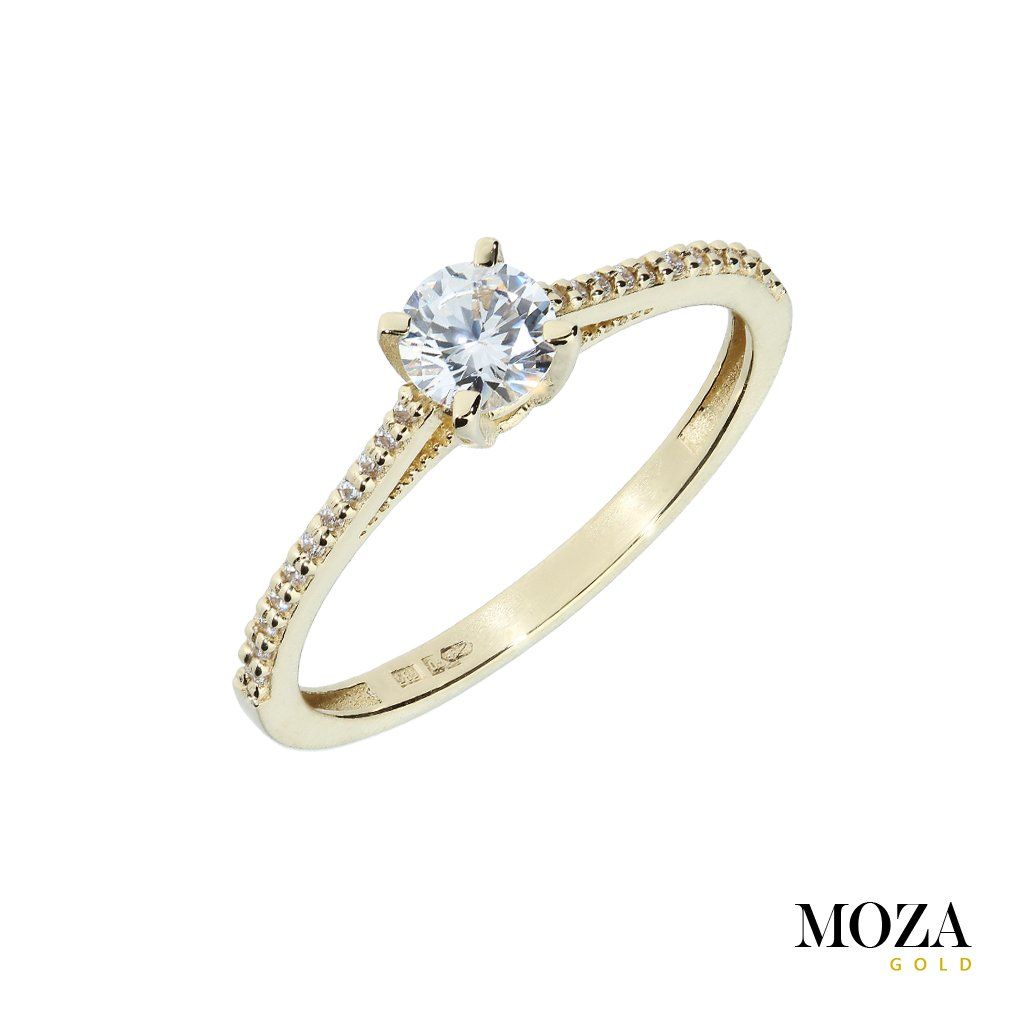 Prsteň je vyrobený zo žltého zlata rýdzosti 14ct (585/1000).